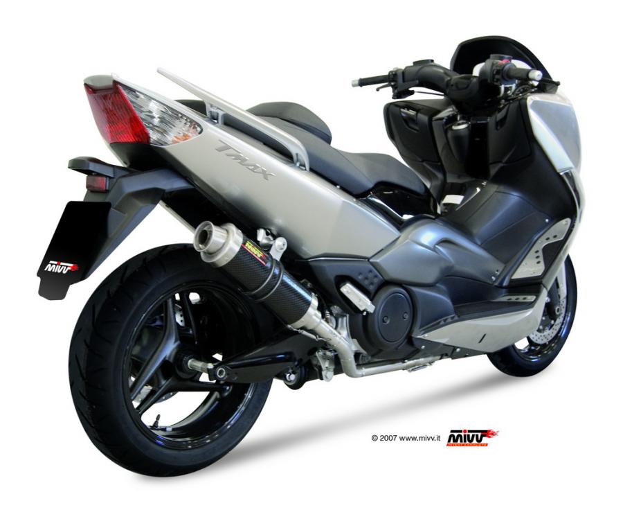 MIVV pone a tu disposición tres silenciadores que parecen diseñados por y para el Yamaha TMax de 2008. El "Suono", el deportivo "GP" y el "Ovalado" son las tres propuestas de la marca italiana, todos ellos con homologación "CE" y transformables en versión racing, simplemente quitando el DB Killer.