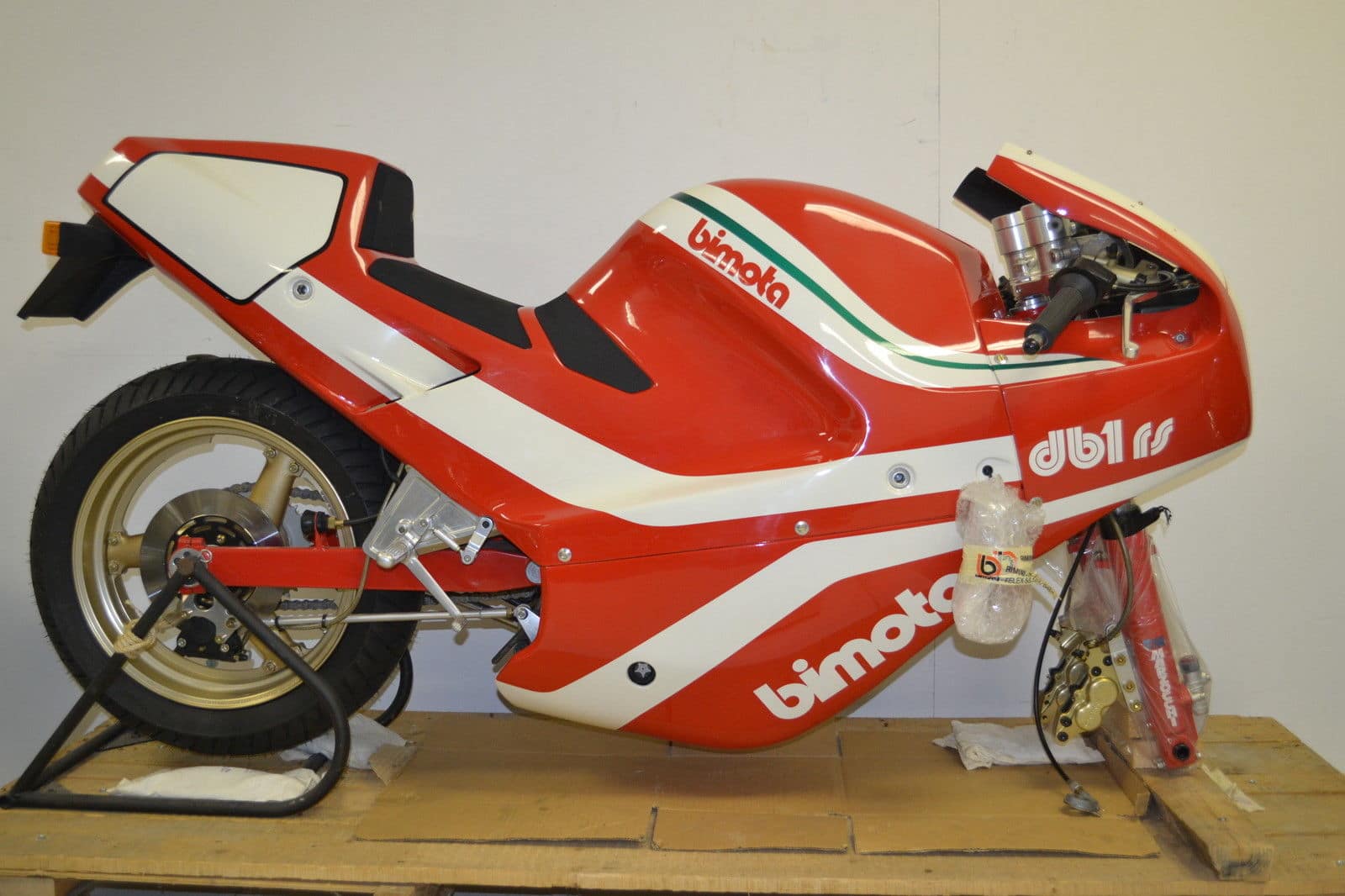 Pero lejos del hecho de que la DB1 es exclusiva de por si, esta unidad presentaba unas condiciones realmente difíciles de encontrar, ya que se encontraba sin uso, literalmente a estrenar. Y no se trata de una moto comprada y luego no empleada por su propietario, sino una Bimota no vendida jamás, dentro de su embalaje original.