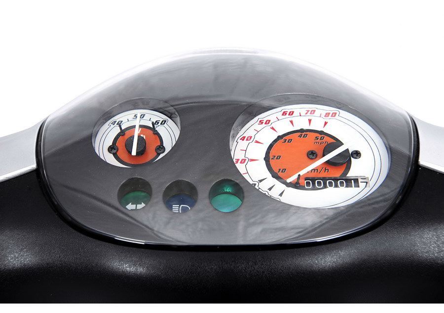 El top case es de dimensiones considerables y con un pequeño respaldo para el acompañante, y su velocidad máxima es de 45 km/h.