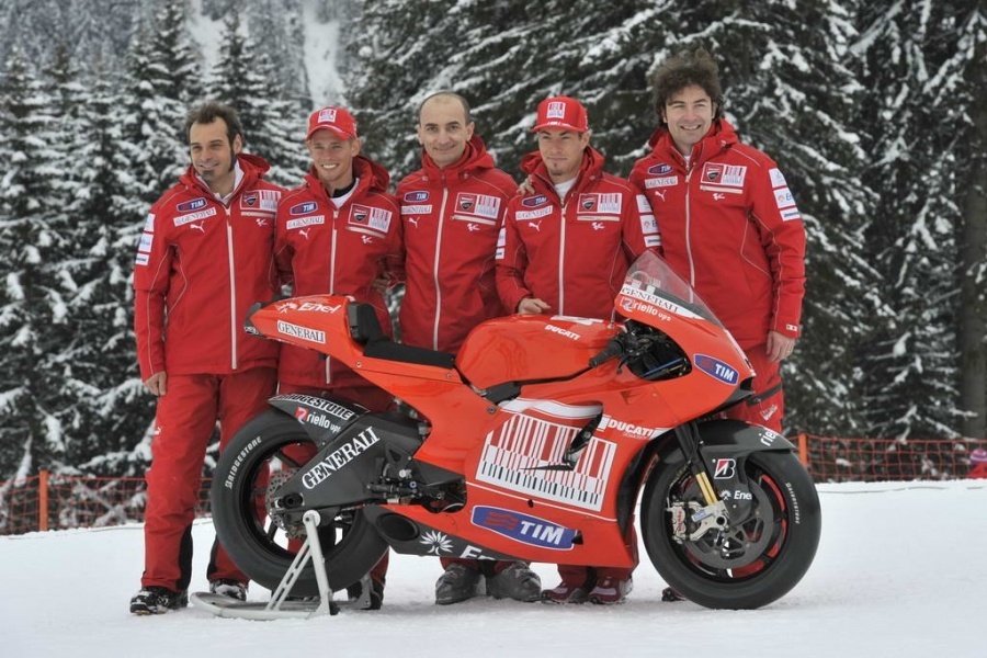 Con el fondo de los Dolomitas y una estampa totalmente nevada, el Ducati Marlboro Team ha desvelado la que será su próxima arma para intentar conquistar un nuevo título en la categoría reina. Minutos antes, y durante la rueda de prensa, Domenicali ha comentado que la fe «es la palabra clave que Ducati emplea para mirar este 2010 en varios aspectos. Tenemos