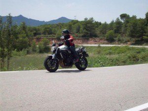 Salvando las distancias, el comportamiento sigue la misma línea que su hermana más deportiva, es decir, una entrega de potencia suave al principio pero muy radical en la zona alta. Entrando más en detalle, se puede decir que los caballos van llegando en tres turnos: el primer tirón lo da a unas 6.000 rpm aproximadamente; el segundo algo por encima de las 8.000 rpm; y el último, el más divertido, a partir de las 10.000 rpm hasta el final del régimen, es decir, hasta las 14.000 rpm.