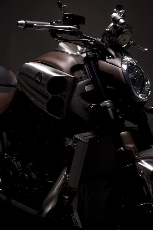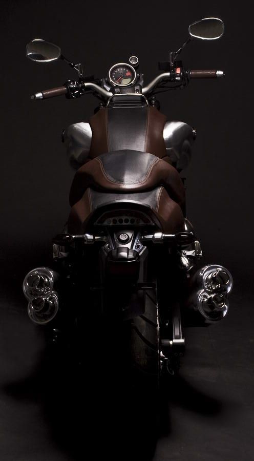 Los tapizados de cuero refuerzan las líneas escultóricas de esta moto única, subrayando su poder emocional. Las piezas mecánicas también han sido trabajadas para complementar la combinación de cuero y aluminio: los retrovisores, los colectores y los escapes son de aluminio con acabado cepillado.